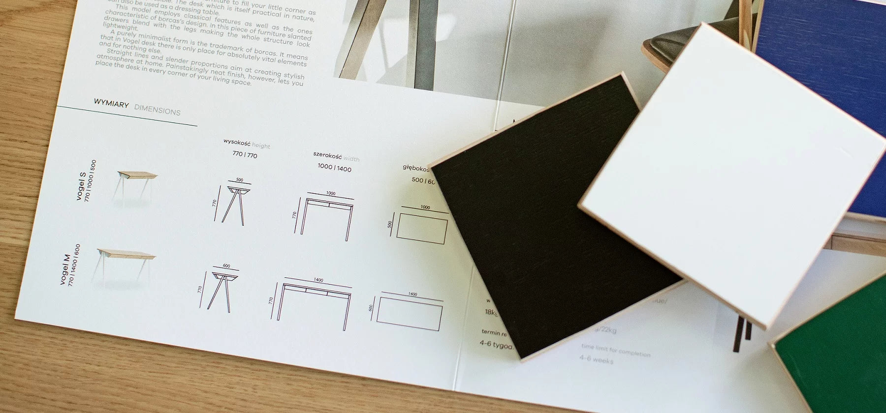 Bei borcas hängt sehr viel von unseren Kunden ab. Deswegen geben wir eine Wahlmöglichkeit von vielen Varianten, die in unserem e-Farbmuster zugänglich sind. Du kannst z.B. Schreibtisch vogel aus der Kollektion Amsterdam., dessen Tischplatte aus der natürlichen Eiche oder gekalkten Eiche angefertigt wäre schaffen oder an ihn eine aus vier Beinfarben anpassen. In unserem Angebot findest du außerdem viele andere Finishvarianten für Holz, Metall oder einzelnen Möbel aus unseren Kollektionen. Es ist von dir abhängig, was du verbindest! Schau dir unseren e-Farbmuster an und schaffe die erträumten Möbel.