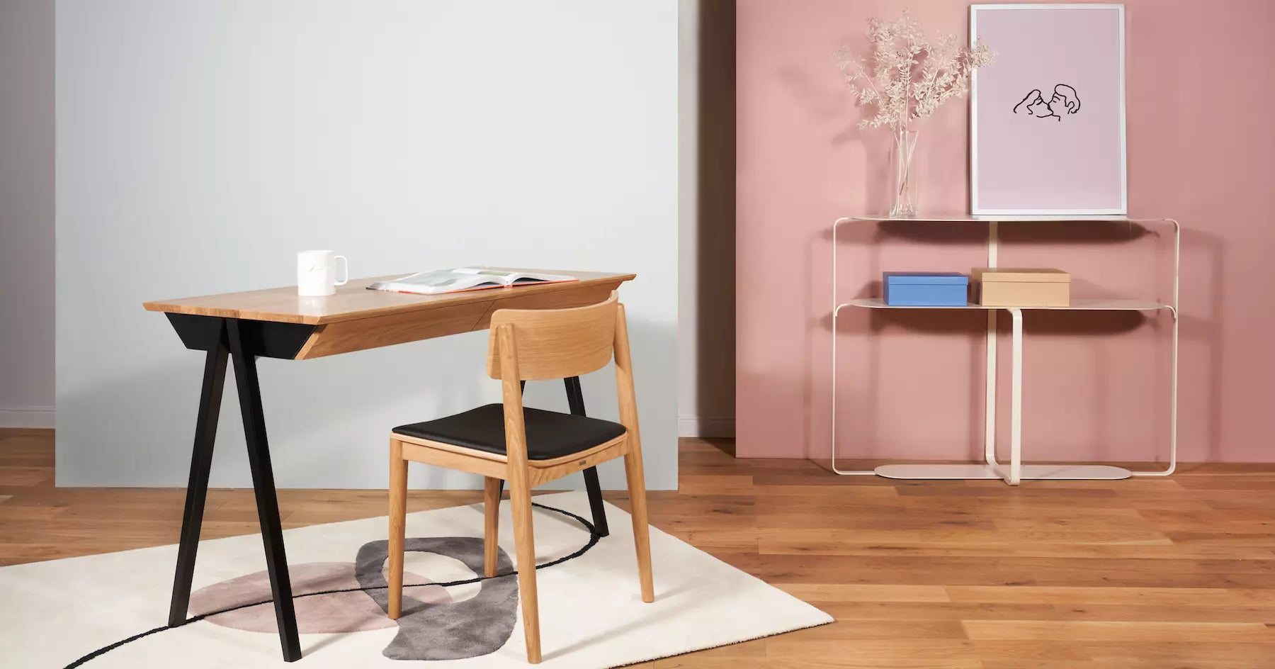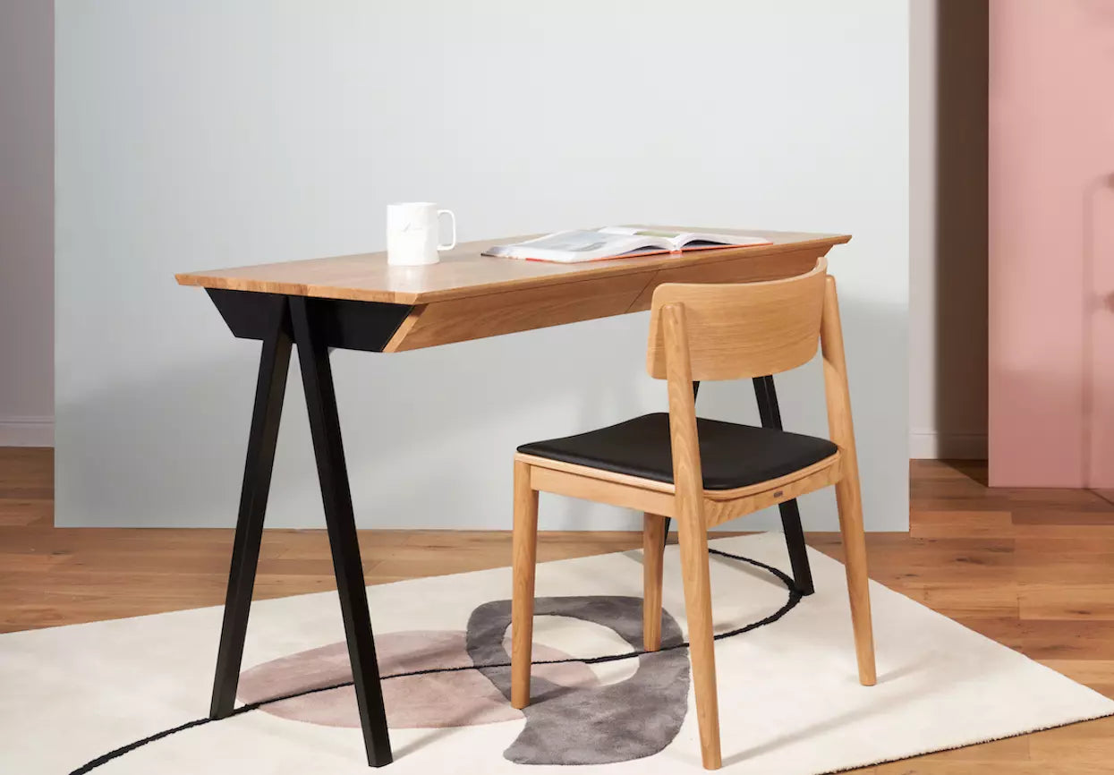 “The Vogel desk was created in response to the needs of our customers. Its compact size makes it ideally suited to the aesthetics of a home workspace or study desk. The use of natural materials such as oak and beech wood guarantees stability and durability, and 2 drawers make it easy to keep things tidy.”