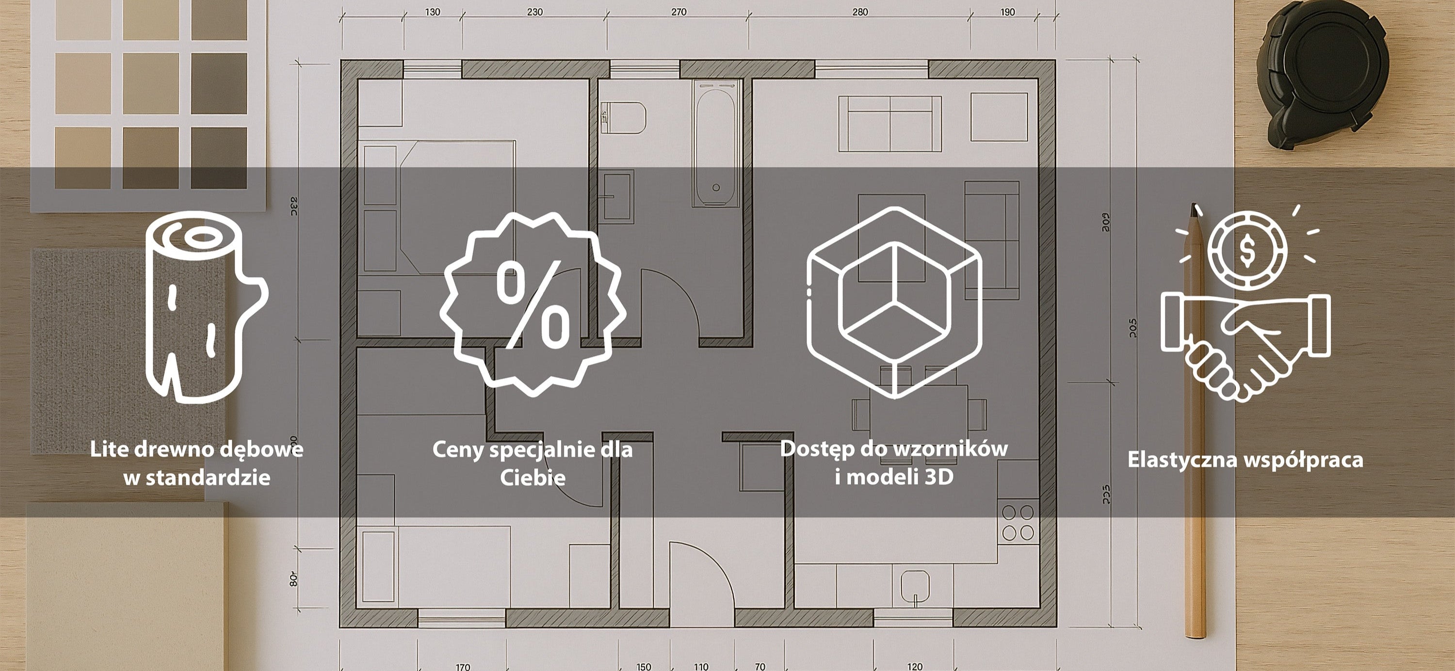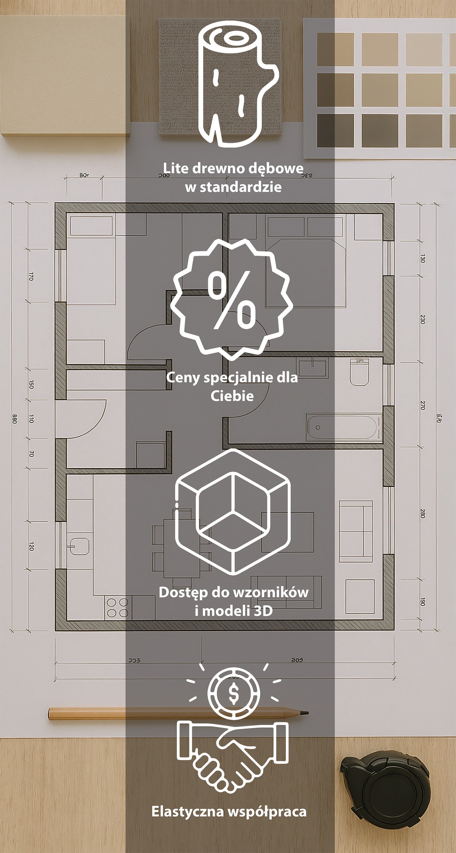 Nasza oferta dla architektów i projektantów wnętrz została stworzona z myślą o codziennej pracy z klientami. Otrzymujesz konkretne narzędzia, przejrzyste warunki i dostęp do wszystkich materiałów, które przyspieszają projektowanie.