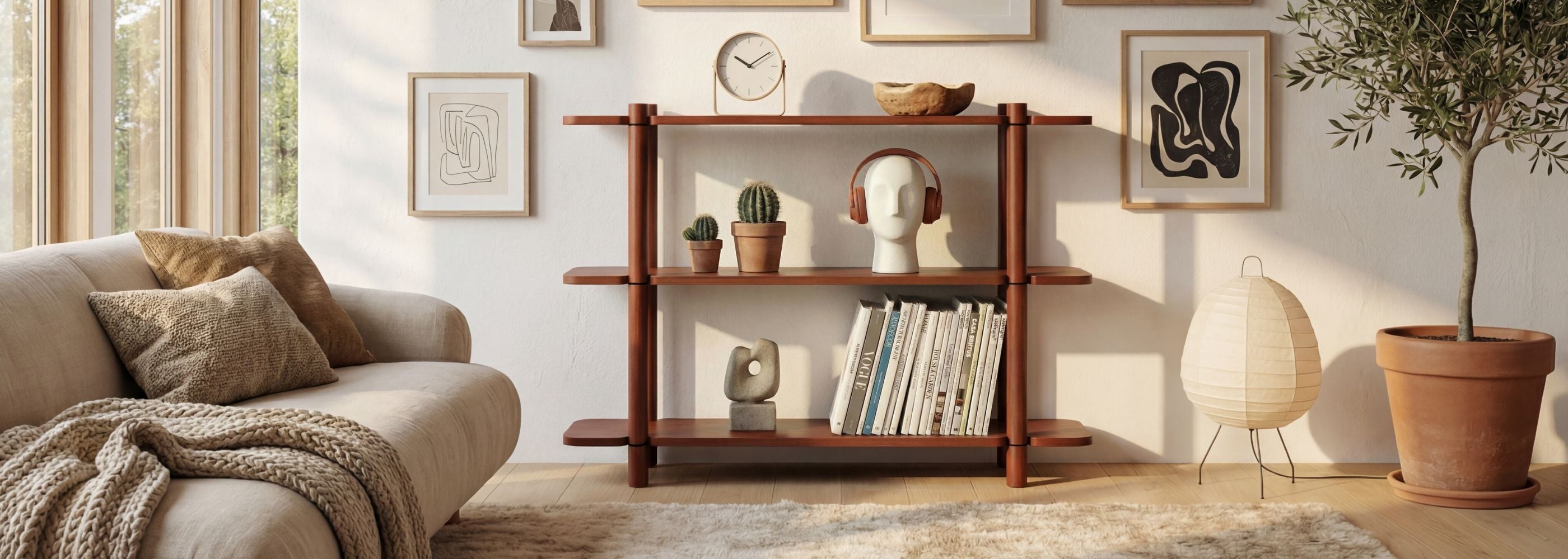 Regał Noe dostępny jest w czterech starannie dobranych wykończeniach: Natural Oak, Black, Russet oraz Cashmere. Każdy z wariantów podkreśla charakter drewna i pozwala dopasować mebel do różnych aranżacji wnętrz - od jasnych, naturalnych przestrzeni po bardziej wyraziste, nowoczesne kompozycje.