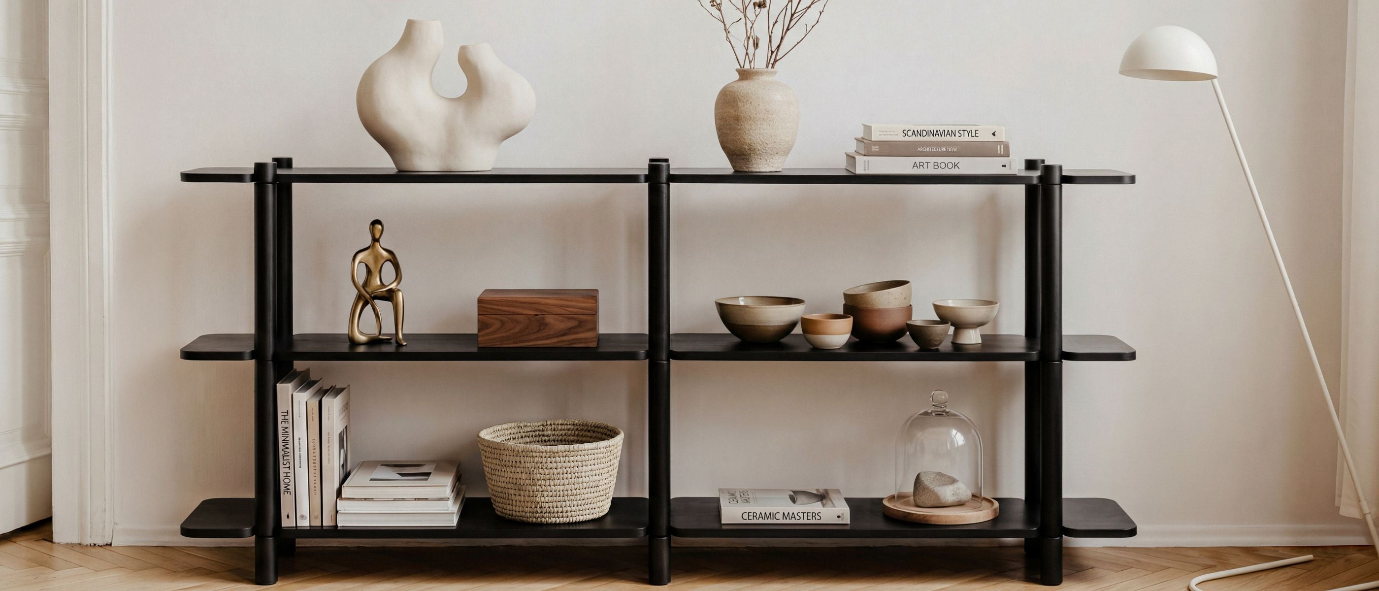 Regał Noe dostępny jest w czterech starannie dobranych wykończeniach: Natural Oak, Black, Russet oraz Cashmere. Każdy z wariantów podkreśla charakter drewna i pozwala dopasować mebel do różnych aranżacji wnętrz - od jasnych, naturalnych przestrzeni po bardziej wyraziste, nowoczesne kompozycje.