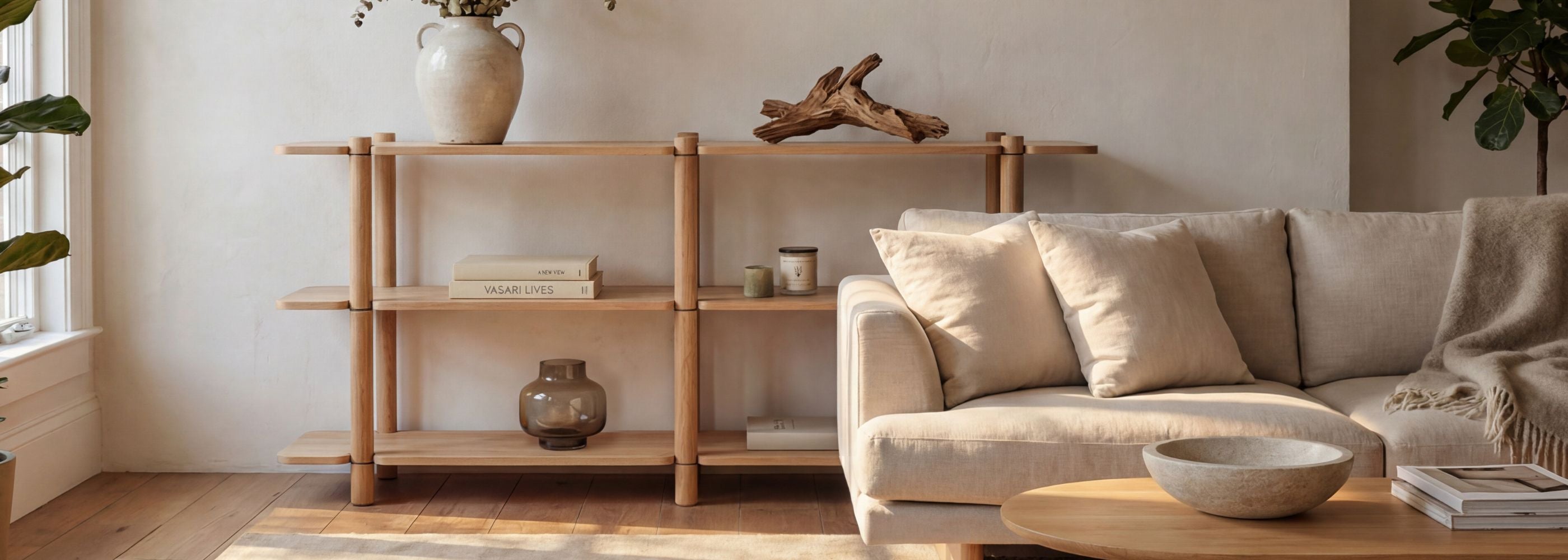 Regał Noe dostępny jest w czterech starannie dobranych wykończeniach: Natural Oak, Black, Russet oraz Cashmere. Każdy z wariantów podkreśla charakter drewna i pozwala dopasować mebel do różnych aranżacji wnętrz - od jasnych, naturalnych przestrzeni po bardziej wyraziste, nowoczesne kompozycje.